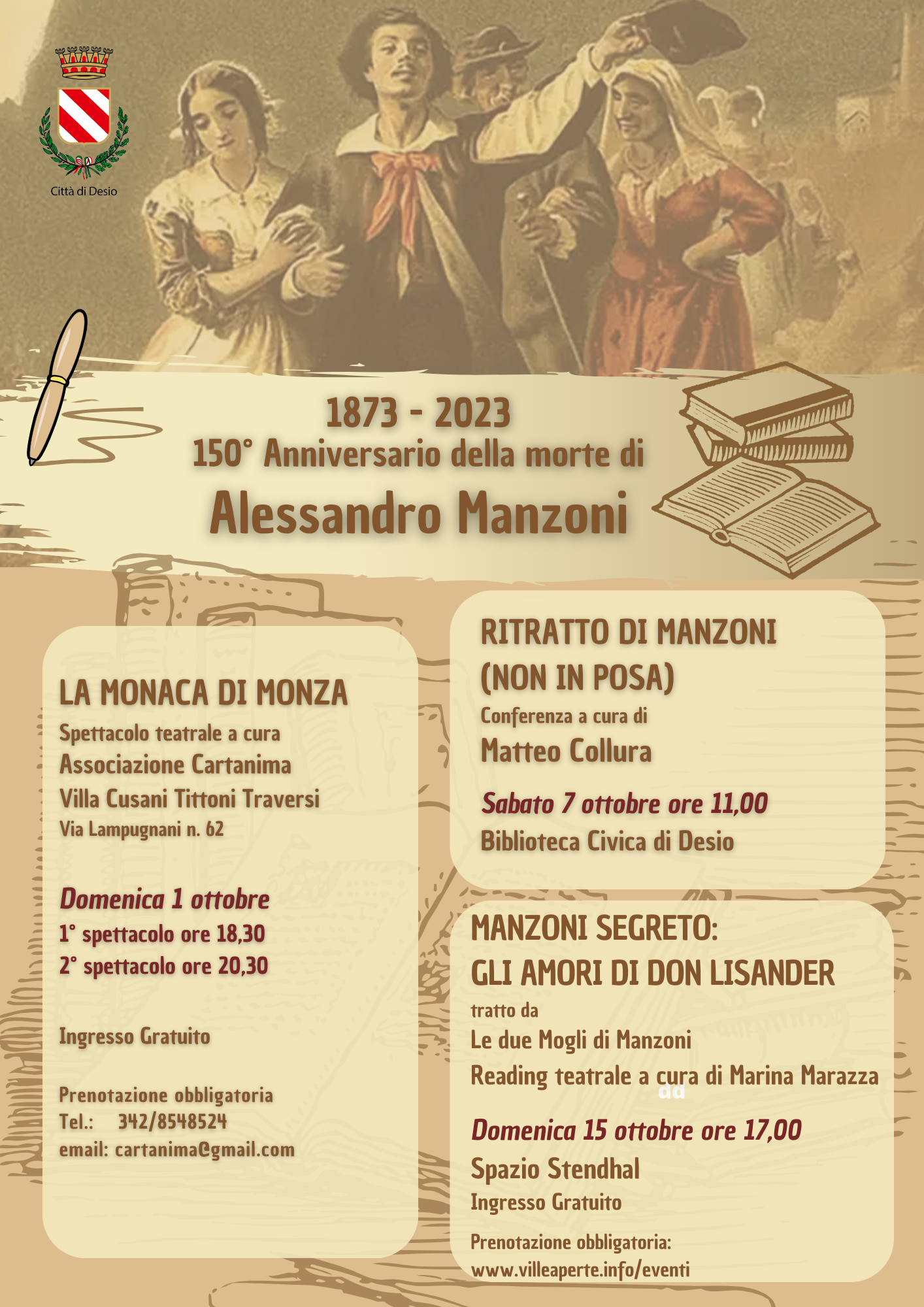 La città di Desio prosegue con le celebrazioni del 150°anniversario della morte di Alessandro Manzoni, scrittore, poeta e drammaturgo, considerato uno dei più grandi romanzieri della nostra letteratura per il capolavoro 'I Promessi Sposi', ma non solo.