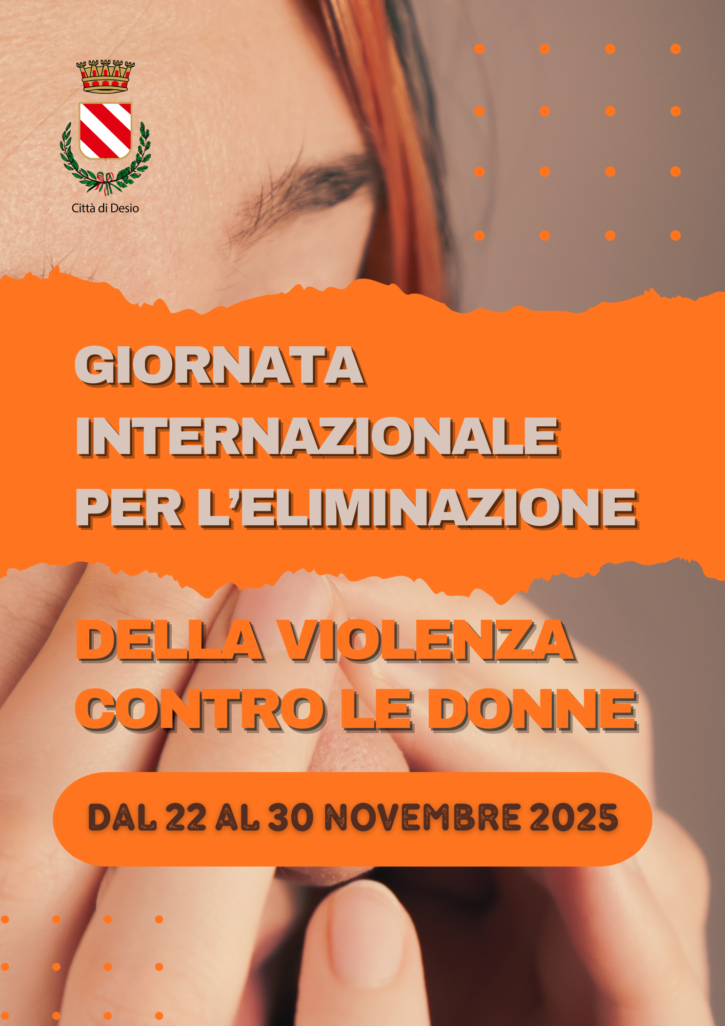 - Giovedì 27 novembre: alle ore 20:30 in Sala Consiliare: precederà la seduta del Consiglio Comunale un momento di incontro con il gruppo teatrale "Sonia Bonacina" sul tema della violenza di genere e saranno visibili i lavori degli studenti delle scuole di Desio;