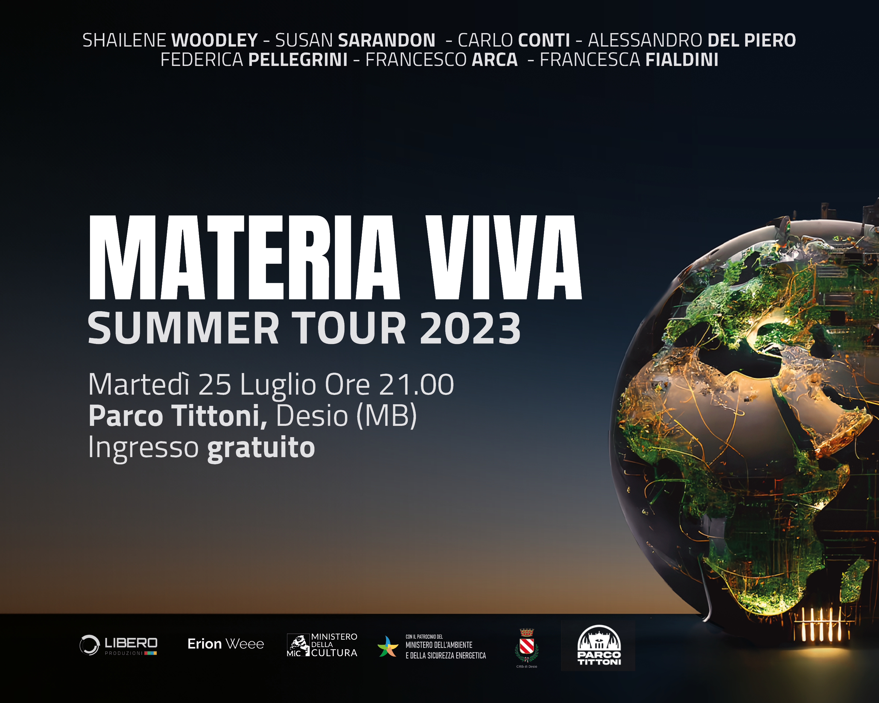 “Siamo molto felici di ospitare la prima tappa del Summer Tour di ‘Materia Viva’, un docufilm, unisce arte, cultura e ambiente: tre elementi che per noi di Parco Tittoni sono molto importanti e ai quali, da anni, prestiamo particolare attenzione. La possibilità di lavorare in sinergia con Erion, un’azienda che ha davvero a cuore l’ambiente; Gelsia Ambiente, con cui c’è un’eccezionale collaborazione da tanto tempo, e con il Comune di Desio, è un valore aggiunto per Tittoni. Inoltre, la meravigliosa cornice naturale del Parco ben si presta a questo evento che, alla parte artistica del docufilm, ne associa una di grande valenza sociale e ambientale come la raccolta dei RAEE e delle pile a fine vita. Siamo, infine, molto orgogliosi del fatto che le due proiezioni del nostro programma 2023, siano declinate su temi green. Dopo ‘Materia Viva’, infatti, abbiamo in cartellone il Cinema a Pedali, una rassegna di cortometraggi che verrà riprodotta sul grande schermo grazie a uno speciale proiettore collegato a una bici e alimentato dall’energia generata dalla pedalata degli spettatori” – ha dichiarato Alessio Caccavale, Direttore Artistico di Parco Tittoni.