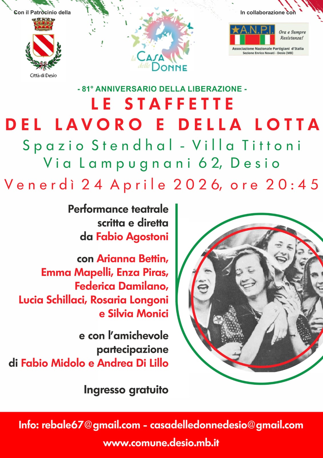 In occasione dell'81° anniversario della Liberazione la Casa delle Donne, con il patrocinio del Comune e in collaborazione con Anpi.