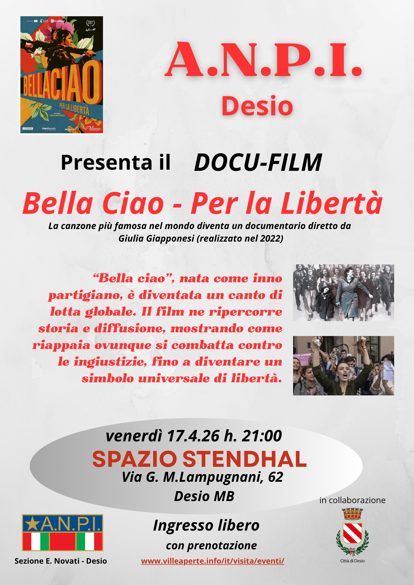 In occasione dell'81° anniversario della Liberazione, Anpi Desio presenta il docufilm ‘Bella Ciao – Per la libertà’, la canzone più famosa nel mondo diventa un documentario diretto da Giulia Giapponesi (realizzato nel 2022).
