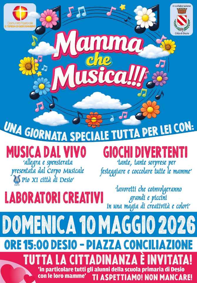 Tutta la cittadinanza è invitata! In particolare tutti gli alunni della scuola primaria di Desio con la loro mamme.