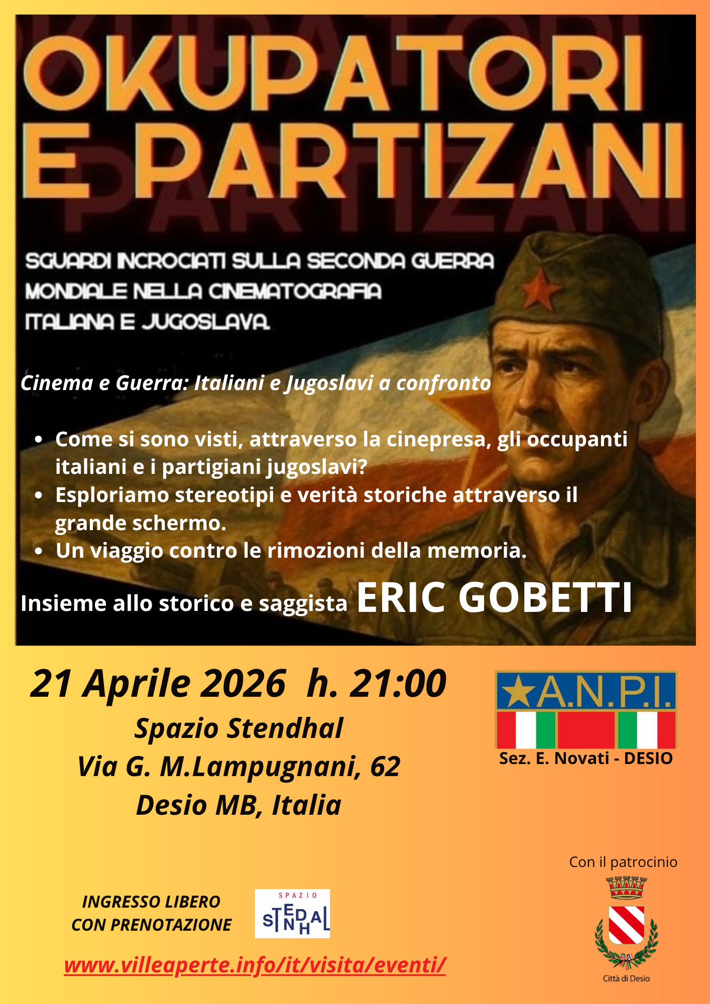 In occasione dell'81° anniversario della Liberazione, l'Anpi con il patrocinio del Comune presenta Okupatori e Partizani. Sguardi incrociati sulla seconda guerra mondiale nella cinematografia italiana e jugoslava.