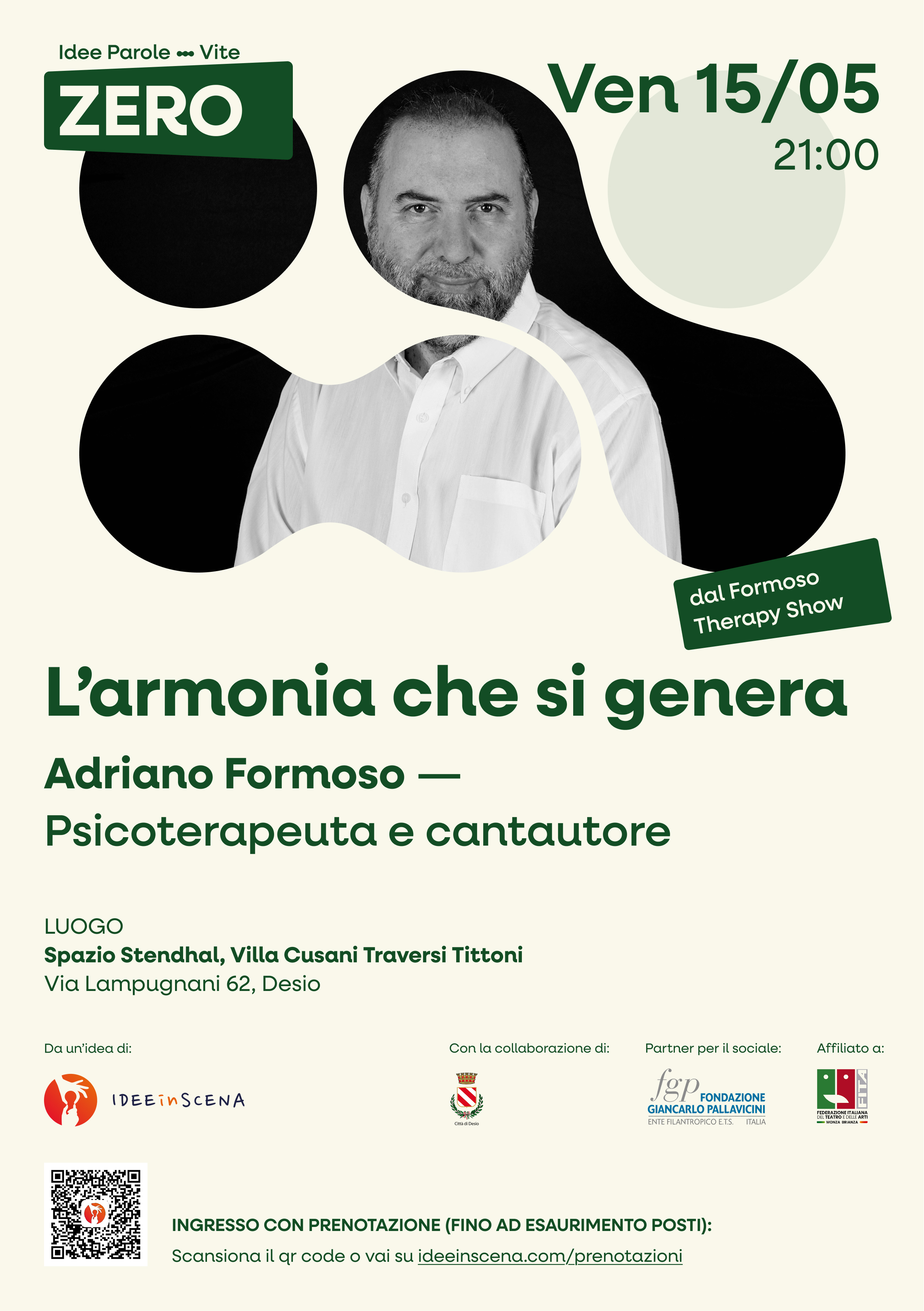 Il primo appuntamento è con “L’armonia che si genera” di Adriano Formoso, psicoterapeuta e cantautore.