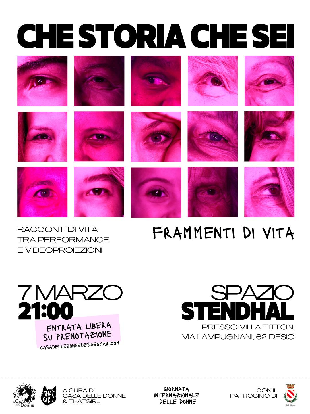 Una serata dedicata a frammenti di vita con storie di donne tra racconti di vita, performance e videoproiezioni.