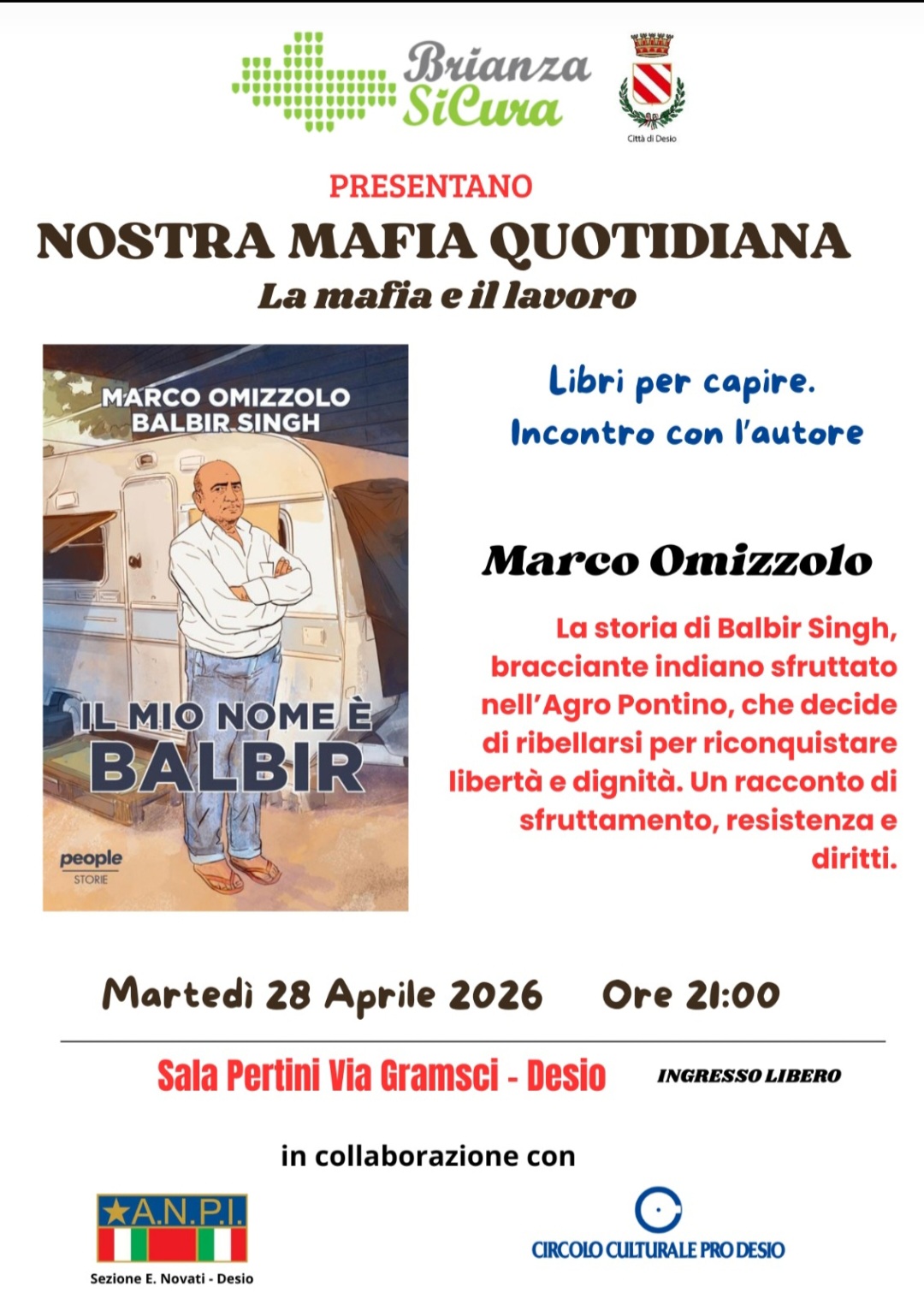 Secondo appuntamento del ciclo di tre serate dal titolo “Nostra mafia quotidiana” organizzata da Brianza Sicura in co-progettazione con il Comune di Desio e in collaborazione con Anpi e Circolo Culturale Pro Desio.