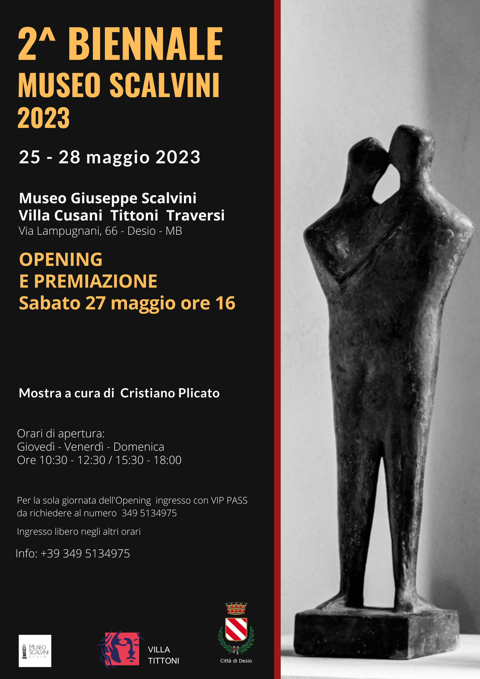 Un’esposizione a cura di Cristiano Plicato, Curatore e Direttore del Museo Scalvini Desio, che sarà inaugurata sabato 27 maggio alle ore 16, comprende opere di pittura, scultura e fotografia: “Il Comune rinnova il proprio supporto a questa iniziativa, dopo il buon successo della prima edizione, che si è distinta per qualità della mostra e per la partecipazione di talenti italiani e stranieri di spessore - dichiara l’Assessore alla Cultura Samantha Baldo - Confermata anche l’internazionalità della Biennale, Desio, grazie alla sua cornice piu’ prestigiosa, quella di Villa Tittoni, continua il suo percorso di promozione di marketing territoriale in un’ottica aperta all’internazionalizzazione anche dal punto di vista dell’arte e della tradizione”.