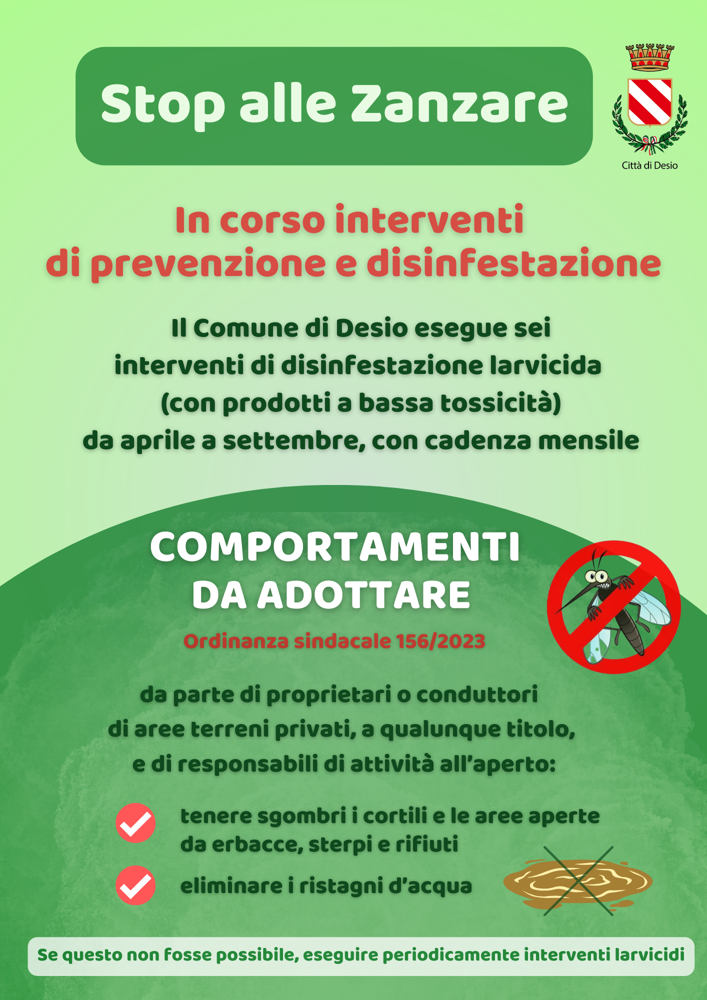 L'ufficio ecologia resta comunque a disposizione (ecologia@comune.desio.mb.it) per qualsiasi tipo di informazione sulle tematiche di disinfestazione.